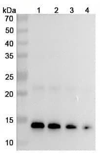 SDS-PAGE for Recombinant Human CCL2/MCP-1 Protein, N-His | Detects Carlumab in indirect ELISAs.,Detects Human CCL2/MCP-1 Antibody (11k2) in indirect ELISAs. | Detected by Anti-CCL2/MCP-1 monoclonal antibody (Catalog No.:TD-HY218026)