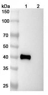 Use a manual defrost freezer and avoid repeated freeze thaw cycles. Store at 2 to 8°C for frequent use. Store at -20 to -80°C for twelve months from the date of receipt.