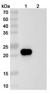 Use a manual defrost freezer and avoid repeated freeze thaw cycles. Store at 2 to 8°C for frequent use. Store at -20 to -80°C for twelve months from the date of receipt.